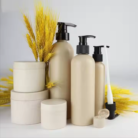 Recyclable Biodegradable 200ml 300ml 500ml Empty Cosmetic Packaging Wheat Straw Plastic Pump Lotion Bottle for Skin Care Serum